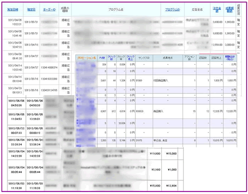 レポートには以下のようなひと月のアフィリエイト収入に関するデータが含まれています。