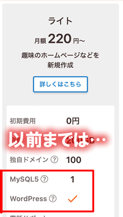 設定可能なプランだったので、Wordpressでブログやホームページを複数運営したい人には不向きなプランでした。